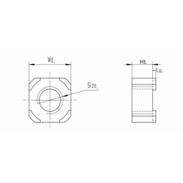 M4 - M10 201 Stainless Steel Square Weld Nuts Drawing And Parameter